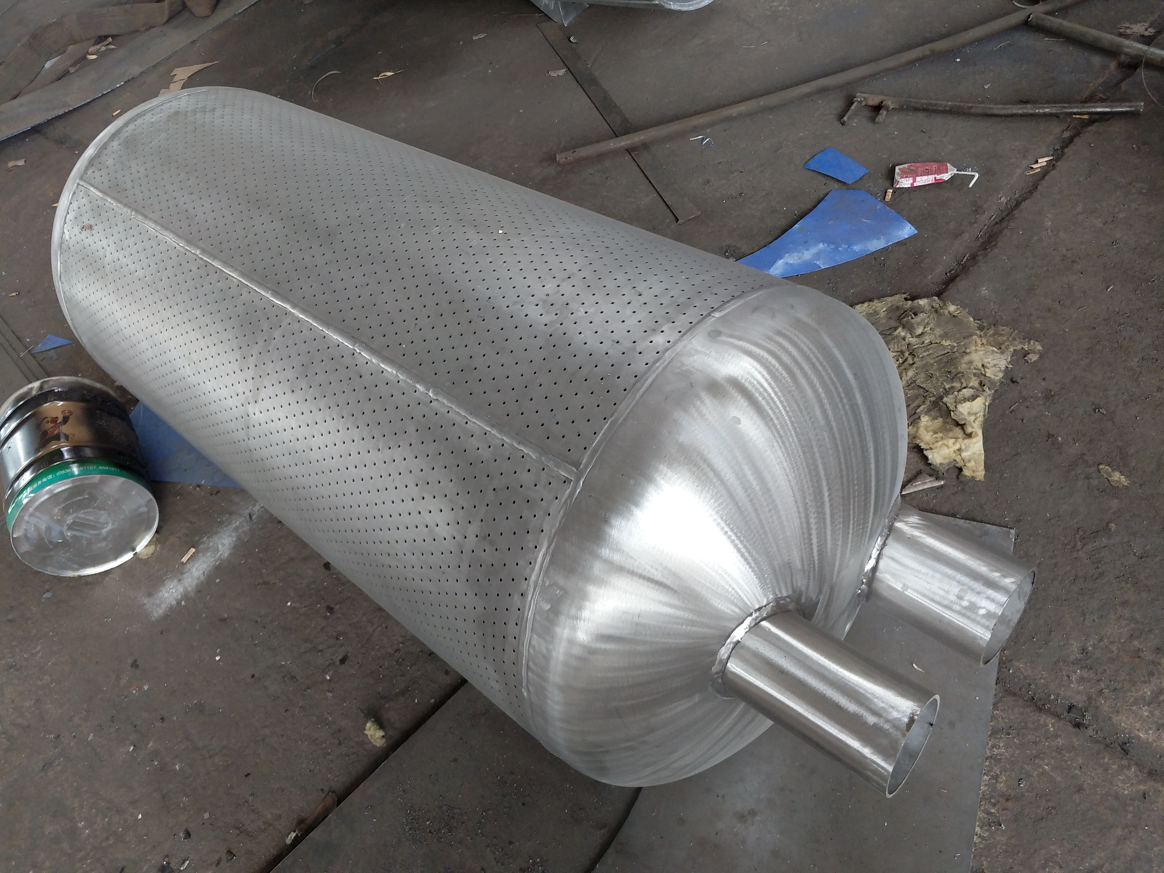 小孔消声器,声学壳体我公司-荐遥遥不锈钢制造,连接管根据设备蒸汽工况来确定。-用的三种接管材质为20#碳素钢,304(0Cr18Ni9)、321(1Cr18Ni9Ti\0Cr18Ni10Ti)不锈钢以及适用于高温高压的合金钢管。