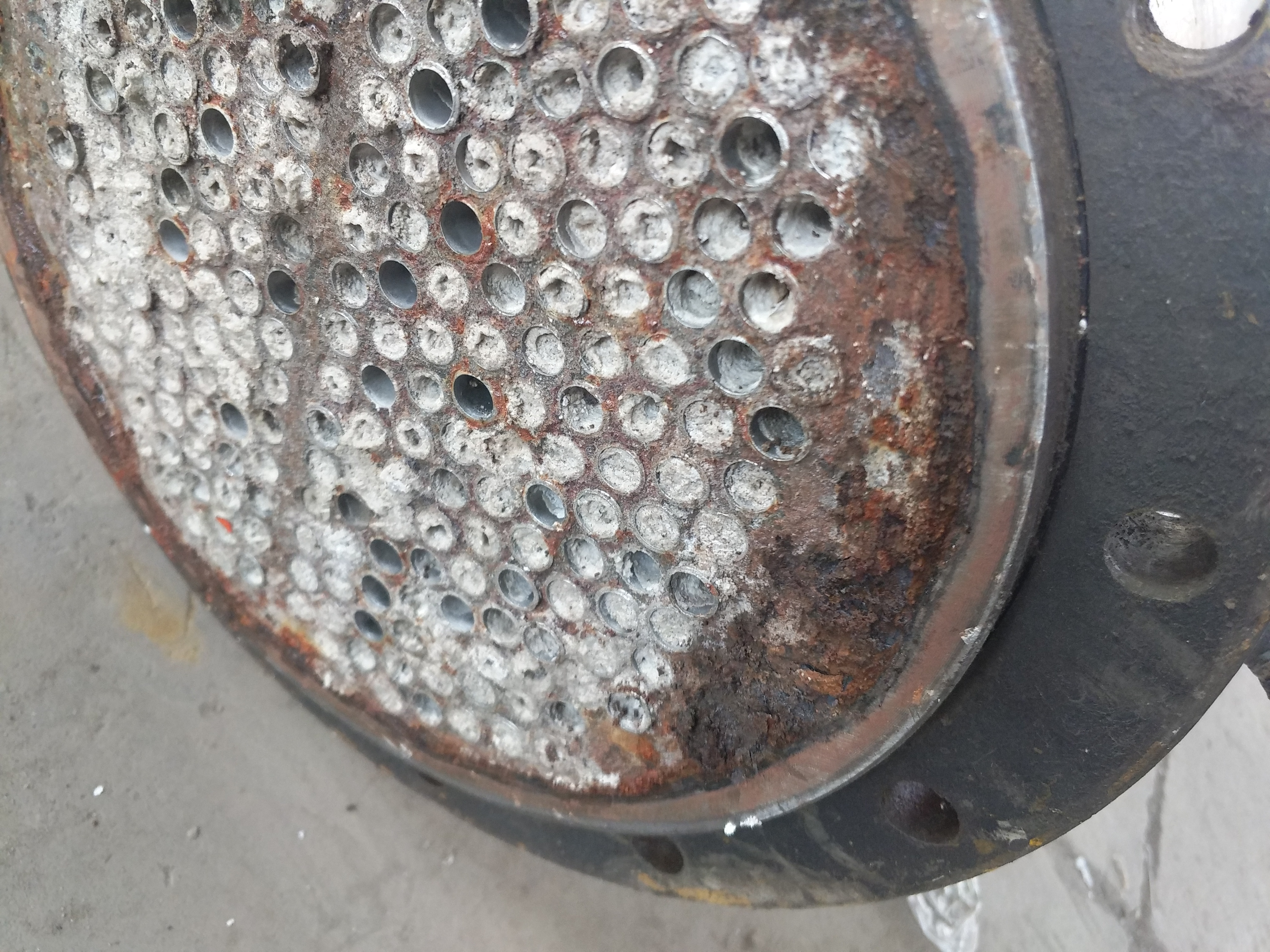 2、剔除旧不锈钢管:选用-用半圆三角錾子剔除,剔时注意不要损伤管板,剔光不锈钢管,将旧不锈钢管抽出后将管板管孔清理干净,用细砂布打磨光洁,用布擦掉粉尘。